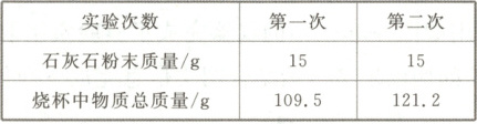 (2)解:加入15g石灰石时生成二氧化碳的质量为100g + 15g - 109.5g = 5.5g,设15g石灰石中碳酸钙的质量为x。