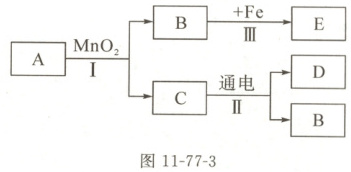 01 [徐州中考] A~E 是初中化学中的常见物质且都含有一种相同元素,它们之间的一步反应转化关系如图 11-77-1 所示(部分反应物、生成物及转化关系未标出)。其中,A 通常为气体,B 俗称纯碱,C 是大理石的主要成分,E 是一种单质。下列说法不正确的是 (