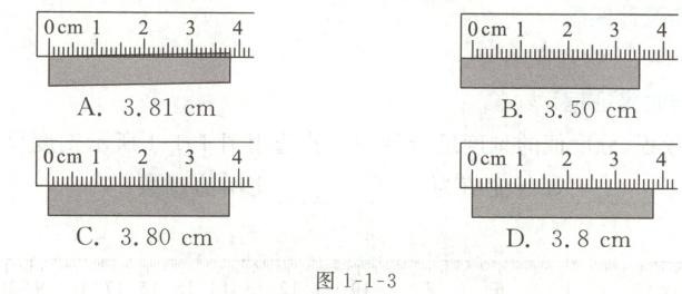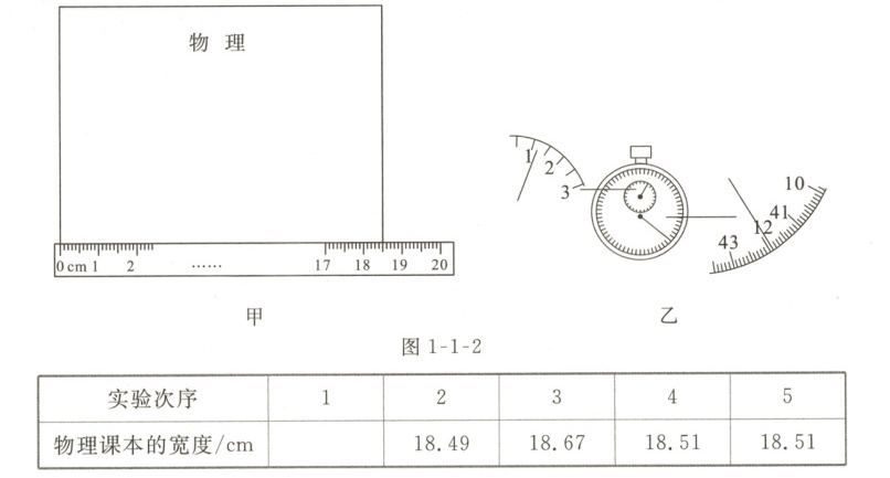 (1) 如图 1-1-2 甲所示是小明第一次测得的物理课本的宽度,数据应记为