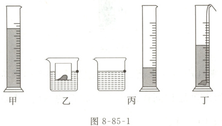 A. 如图 8-85-1 甲,向量筒中加入适量的水,记下体积$V_1$。