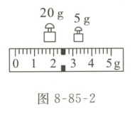 ②小明将鹅卵石放在天平左盘中,横梁恢复平衡时右盘中砝码质量和游码在标尺上的位置如图 8-85-2 所示,则鹅卵石的质量为
