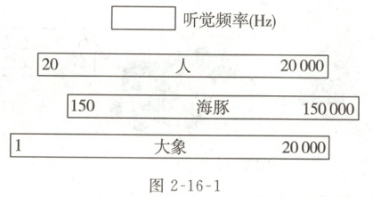 01【全品原创】图2-16-1是人和一些动物听觉的频率范围,判断下列关于超声波和次声波的说法是否正确。