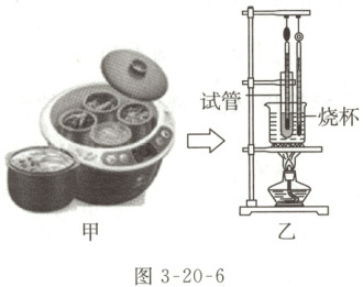 小明由实验联想到家中的电炖锅的结构,设计了如图3-20-6乙所示的实验,持续加热发现试管内的水与烧杯内的水温度