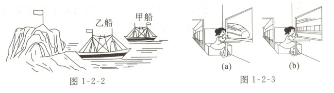 (1)小丽翻看拍摄的海边风景照片(如图1-2-2所示)。由画面的情景,可判断甲船的运动情况: