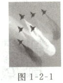 02 小丽一家来到航空基地观看飞行表演,天空中飞机的队形可以在较长一段时间内保持队形不变,甚为壮观(如图1-2-1所示)。其中第一架飞机相对于其他飞机是
