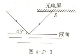 03 小明到爸爸工厂参观时看到了一种由光电控制液面高度的仪器,它是通过光束在液面上的反射光线反射到光电屏上的光斑位置来判断液面高低的,如图 4-27-3 所示。工程师叔叔给小明分析了仪器的工作原理,并设计了一些实际问题,请你帮小明解决: