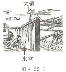 (1)如图 4-29-1 所示,该装置是世界上有记载的最早的潜望镜,则高悬的大镜是