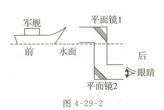 (2)如图 4-29-2 所示是潜望镜的工作示意图,其中两块平面镜均相对水平面倾斜 45°角,潜望镜是利用了光的