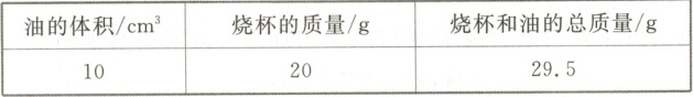 02 解:由表中数据可得,油的质量$m = m_{总}-m_{杯}= 29.5\ g - 20\ g = 9.5\ g$,油的体积$V = 10\ cm^{3}$,则油的密度$\rho=\frac{m}{V}=\frac{9.5\ g}{10\ cm^{3}} = 0.95\ g/cm^{3}$,介于$0.94 \sim 0.96\ g/cm^{3}$之间,所以该油是地沟油。