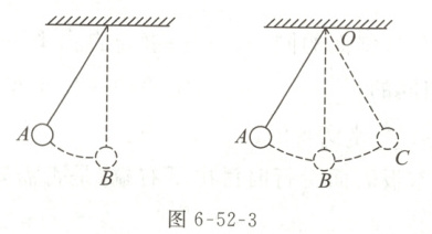 03 如图 6-52-3 所示,摆球从$A$点静止释放,经过最低点$B$点,摆向另一侧的最高点$C$,在此过程中若在$B$点所有外力都消失,摆球将