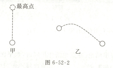 02 有一个质量为$m$的塑料小球。将该小球按图 6-52-2 甲所示竖直向上抛出后,小球到达最高点的瞬间,如果所受的力突然都消失,那么小球将