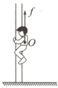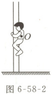 2 如图 6-58-2 所示是电工静止在杆上某处检修电路时的情景,请在图中画出电工所受的摩擦力的示意图。(力的作用点画在重心$O$上)