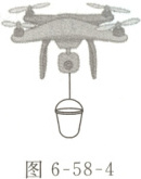 4 如图 6-58-4 所示,小明利用无人机吊一水桶来模拟直升机取水救火的情景。已知无人机对绳子的拉力为 30 N,水和水桶总质量为 3.8 kg,此时无人机竖直匀速下降,则水桶受到的空气阻力为