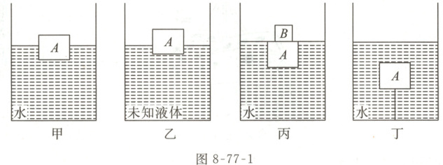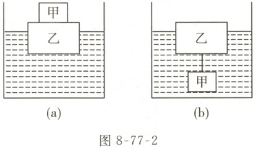 02 如图8-77-2所示,(a)(b)容器中盛有水,乙为木块,甲为铁块。