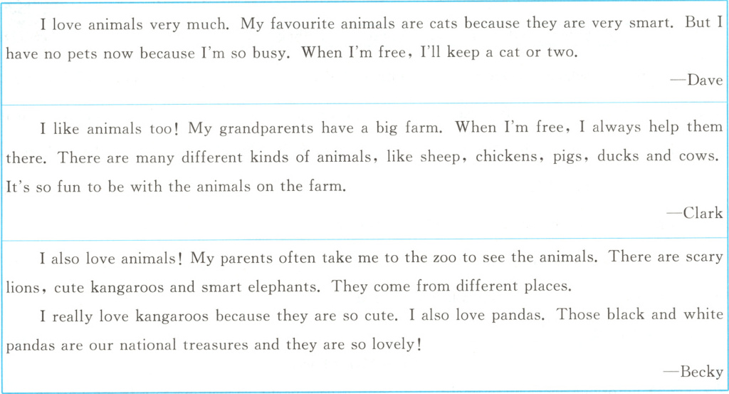 4. She likes kangaroos and pandas./Kangaroos and pandas.