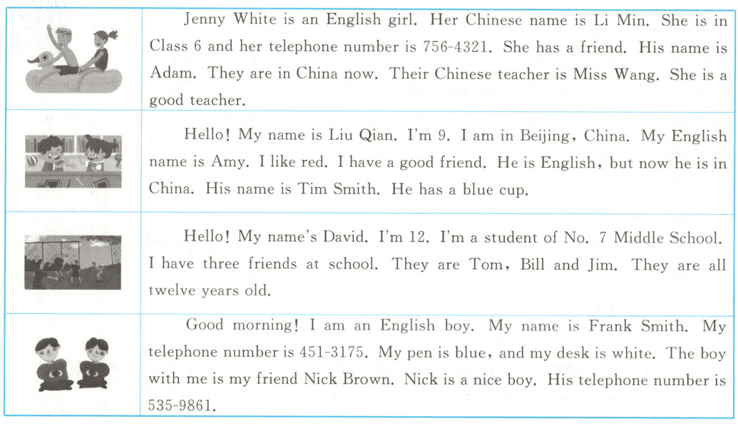 )1. What’s Jenny’s last name?A. Smith. B. Miller. C. Lee. D. White.