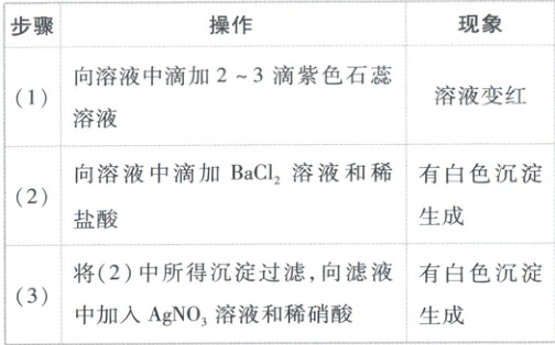 某无色、澄清溶液中可能含有①${Na^{+}}$、②${SO^{2-}_{4}}$、③${Cl^{-}}$、④${HCO^{-}_{3}}$、⑤${CO^{2-}_{3}}$、⑥${H^{+}}$、⑦${Cu^{2+}}$中的几种,且每种离子的浓度均相等。依次进行下列实验,每步所加试剂均过量,观察到的现象如下: