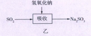 碱法的吸收反应为 $ {SO_{2} + 2NaOH \xlongequal{} Na_{2}SO_{3} + H_{2}O} $。碱法的特点是氢氧化钠碱性强、吸收快、效率高。其流程如图乙所示。