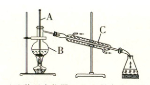 仪器$A$是温度计,$B$是蒸馏烧瓶,$C$是冷凝管。