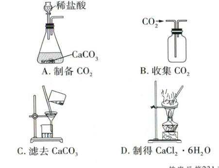 2. [变形](江苏卷)实验室以CaCO₃为原料,制备CO₂并获得CaCl₂·6H₂O晶体。下列图示装置和原理不能达到实验目的的是()