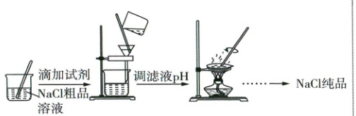 3. (2025年1月浙江卷)提纯NaCl粗品(含少量的Ca²⁺、Mg²⁺、K⁺和SO₄²⁻)得到NaCl纯品的方案如下,所用试剂为BaCl₂溶液、Na₂CO₃溶液、盐酸和NaOH溶液。