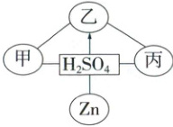 (福建龙岩第一中学月考)构建知识网络是一种重要的学习方法。关于硫酸部分化学性质的知识网络如图所示,“—”表示相连的两种物质能发生反应,“→”表示H₂SO₄在一定条件下可以转化为乙,甲、乙、丙属于不同类别的化合物,则甲、乙、丙可能是