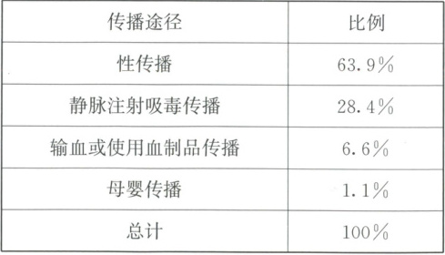 34. (7 分)艾滋病即获得性免疫缺陷综合征(AIDS),是由人类免疫缺陷病毒(HIV)引起的。艾滋病感染和传播迅速,目前还没有有效的治疗方法,因此严重威胁人类健康。下表表示某年我国艾滋病的传播途径及比例;下图表示 HIV 感染人体后,体液中 HIV 浓度和人体内主要的免疫细胞——T 淋巴细胞数量的变化过程。
