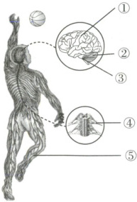 33. (5 分)篮球比赛对运动员的智力和体能都是极大的考验。请结合下面的人体神经系统的组成示意图,分析并回答下列问题。