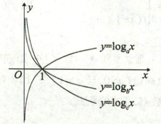 1. 如图是三个对数函数的图像,则 $a,b,c$ 的大小关系是(