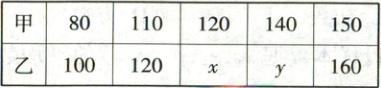 (2)由题意知,乙类品牌汽车的$CO_{2}$排放量的平均值$\overline{x}_{乙}=\frac{1}{5}×(100 + 120 + x + y + 160)=120$,