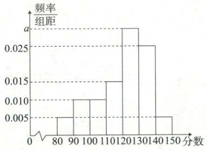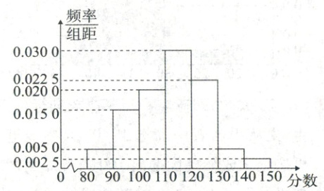 4. [2022·云南玉溪第一中学高二期中]某校为了了解高二年级学生某次数学考试成绩的分布情况,从该年级的 1 120 名学生中随机抽取了 100 名学生的数学成绩,发现都在 $[80,150]$ 内. 现将这 100 名学生的成绩按照 $[80,90)$,$[90,100)$,$[100,110)$,$[110,120)$,$[120,130)$,$[130,140)$,$[140,150]$ 分组后,得到的频率分布直方图如图,则下列说法正确的是(