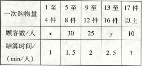 (1)确定$x,y$的值,并求顾客一次购物的结算时间的平均值;
