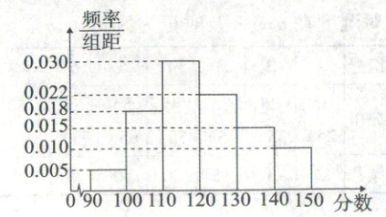 6.133.3 【解析】分数在130以下的学生所占比例为$5\% + 18\% + 30\% + 22\% = 75\%$。分数在140以下的学生所占比例为$75\% + 15\% = 90\%$。因此,80%分位数一定位于$[130,140)$内,由$130 + 10×\frac{0.80 - 0.75}{0.90 - 0.75} \approx 133.3$,可以估计80%分位数为133.3。