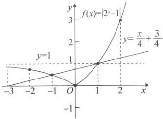 (1)所得f(x)的图像中画出直线y = $\frac{x}{4}$ + $\frac{3}{4}$,可得如下图像(与方程、不等式有关的问题,应联系函数的有关知识,利用函数图像来解决)。