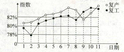 D.第 9 天至第 11 天复产指数增量大于复工指数的增量