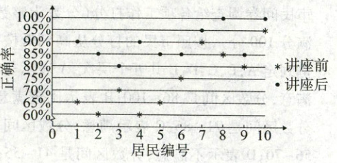 )A.讲座前问卷答题的正确率的中位数小于 70%