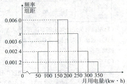 (1) 求直方图中的 x 的值和月平均用电量的众数;