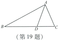 19. 如图,在△ABC中,若AD平分∠BAC,AB=4,AC=2,且△ABD的面积为2,则