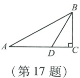17. 如图,在△ABC中,∠ACB = 90°,∠ABC的平分线BD交AC于点D.已知AC = 3,AD = 2,则点D到边AB的距离为