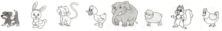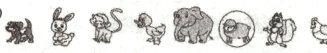 )只动物。(3)圈出从右边数第3只动物。