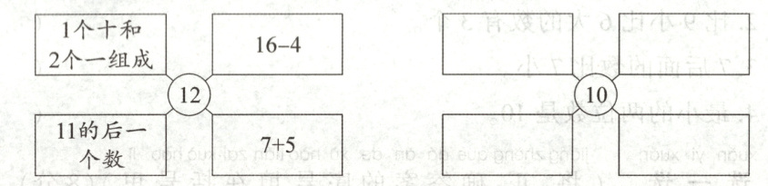 1个十和0个一组成 12-2 9的后一个数 5+5(画线答案不唯一)