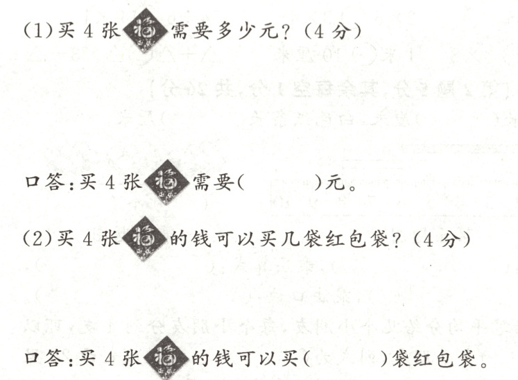 (3)买3袋红包袋和1个灯笼需要多少元?