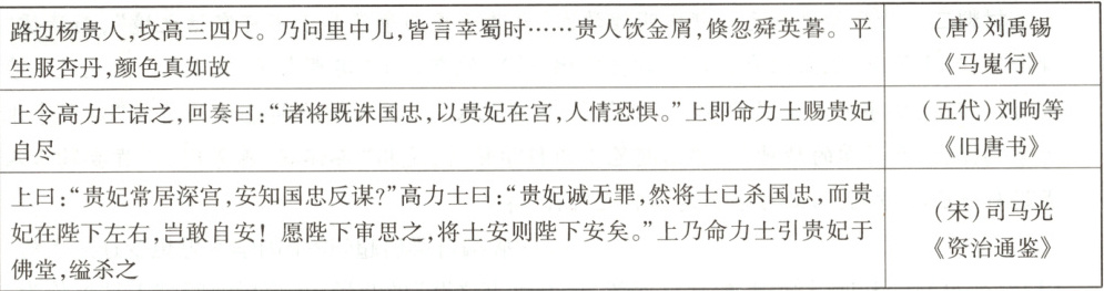 3. 安史之乱时,唐玄宗逃奔成都,途中发生兵变,杨贵妃死于马嵬坡。以下为若干记载。