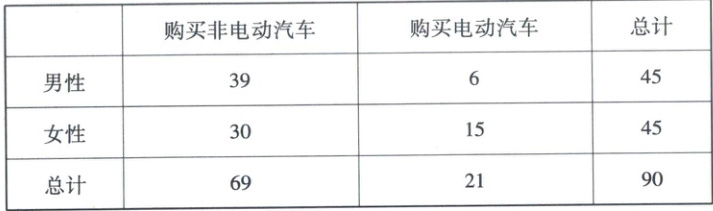 (2) 该机构还调查了该地区 $ 90 $ 位购车车主的性别与购车种类情况,得到的数据如下表: