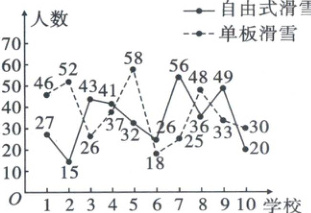 17. [2023·湖北高三联考]第二十四届冬季奥林匹克运动会在北京顺利举行,为推广滑雪运动 深入了解湖北某地中小学学生在“自由式滑雪”和“单板滑雪”两项活动的参与情况,随机选取了 10 所学校进行研究,得到如下图数据: