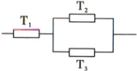 4. A 【解析】记三个元件$T_1,T_2,T_3$正常工作分别为事件$A_1,A_2,A_3$,则$P(A_1)=\frac{1}{2}$,$P(A_2)=\frac{3}{4}$,$P(A_3)=\frac{3}{4}$,记电路不发生故障为事件$M$,则$M=(A_2\cup A_3)\cap A_1$,所以不发生故障的概率$P(M)=P((A_2\cup A_3)\cap A_1)=[1-P(\overline{A_2})· P(\overline{A_3})]· P(A_1)=\left(1-\frac{1}{4}×\frac{1}{4}\right)×\frac{1}{2}=\frac{15}{32}$。故选A。