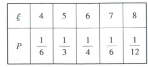 故$E(\xi)=4×\frac{1}{6}+5×\frac{1}{3}+6×\frac{1}{4}+7×\frac{1}{6}+8×\frac{1}{12}=\frac{17}{3}$。