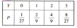 $\therefore E(Y)=0×\frac{1}{27}+1×\frac{2}{9}+2×\frac{4}{9}+3×\frac{8}{27}=2$。
