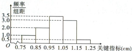 (1)由频率分布直方图,得$ \overline{x}=0.8× 0.1 + 0.9× 0.2 + 1× 0.35 + 1.1× 0.3 + 1.2× 0.05 = 1 $。$ s^{2}=(0.8 - 1)^{2}× 0.1 + (0.9 - 1)^{2}× 0.2 + (1 - 1)^{2}× 0.35 + (1.1 - 1)^{2}× 0.3 + (1.2 - 1)^{2}× 0.05 = 0.011 $。