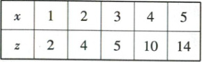 9. [2023·江西九江高三二模]已知变量的关系可以用模型$y=ke^{mx}$拟合,设$z=\ln y$,其变换后得到一组数据(如表)。由表可得线性回归方程$z = 3x + a$,则$k=$(